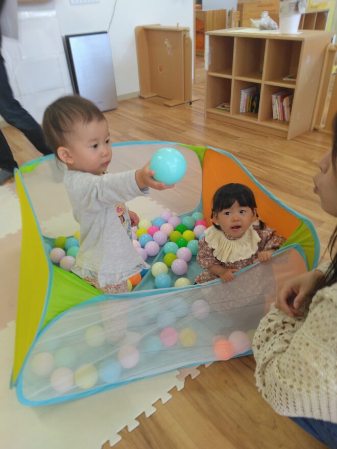 そのあとはボールプールで友だちと遊びながら保護者同士でも関わり合って和やかな雰囲気でした(o^―^o)