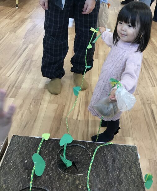 好きなツルを引っ張りながら、何が出てくるかとワクワクな子どもたち。