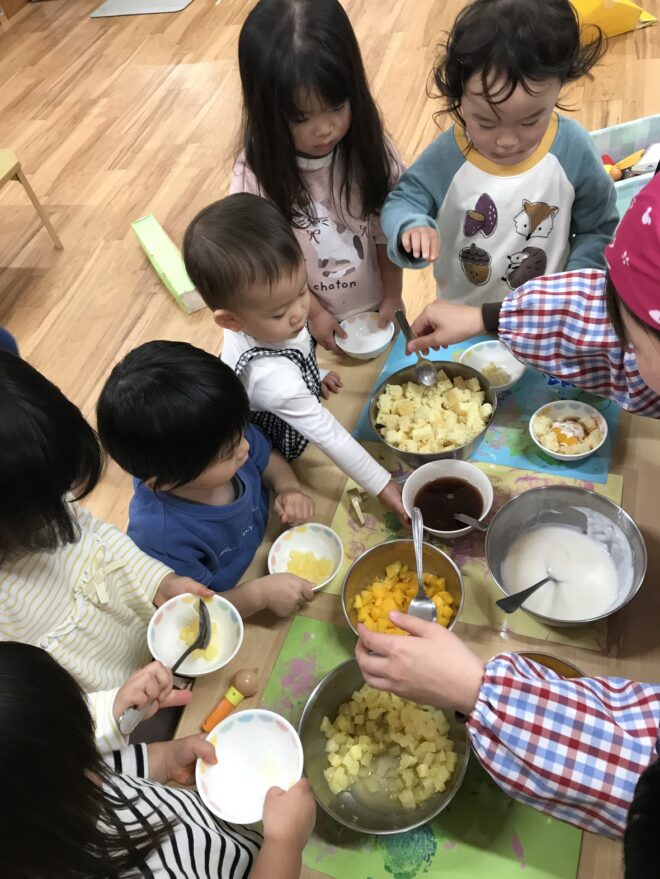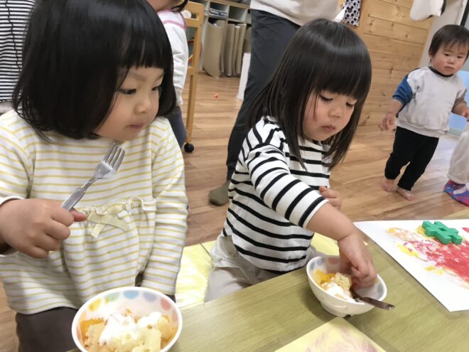 自分でつくったケーキは、普段の何倍も美味しくて、何回もおかわりをしているお友だちもいました。