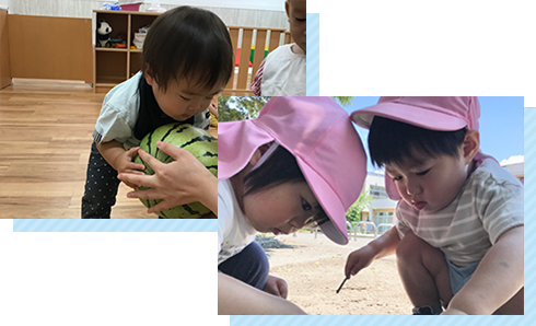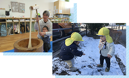 戸外活動、製作、水あそび、リトミック教室・スポーツ教室など、子どもたちの興味・関心に合わせた活動を行っています。 |